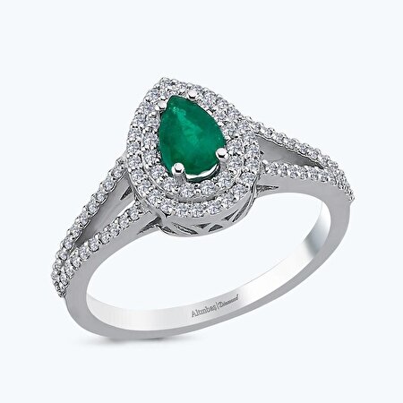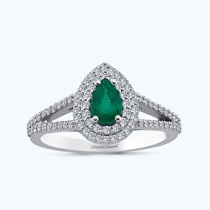 0.72 Karat Pırlanta Zümrüt Damla Yüzük