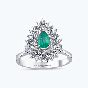 0.82 Karat Pırlanta Zümrüt Damla Yüzük