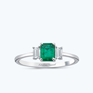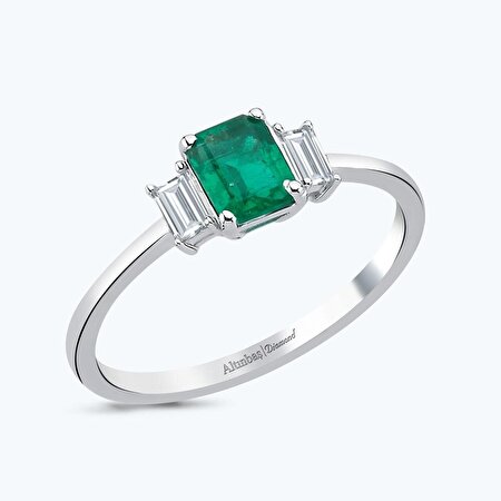 0.17 Karat Pırlanta Zümrüt Emerald Kesim Yüzük