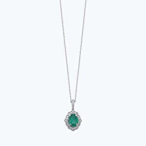 0.90 Karat Pırlanta Zümrüt Oval Kolye
