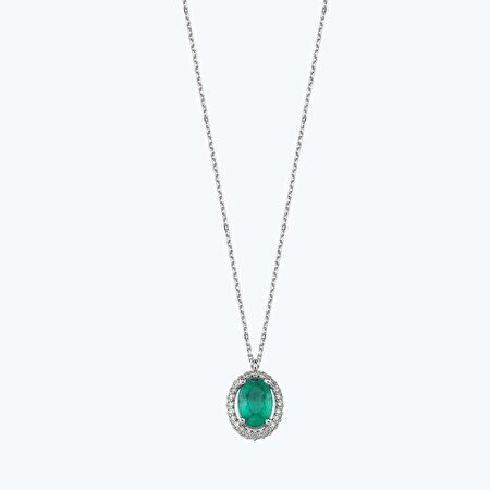0.96 Karat Pırlanta Zümrüt Oval Kolye