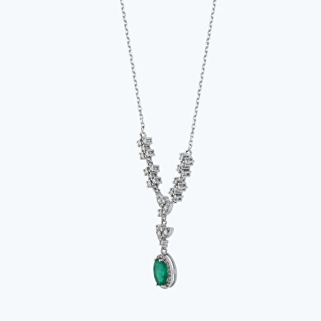 1.39 Karat Pırlanta Zümrüt Oval Kolye