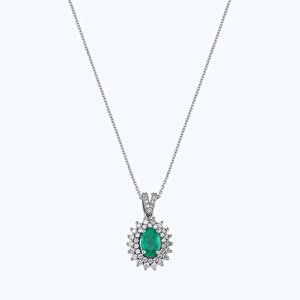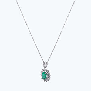 1.31 Karat Pırlanta Zümrüt Oval Kolye