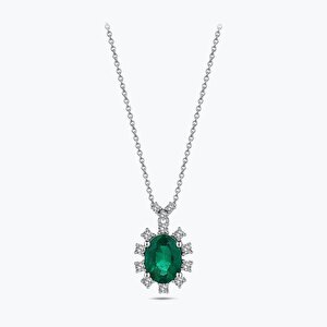 1.51 Karat Pırlanta Zümrüt Oval Kolye