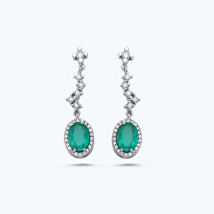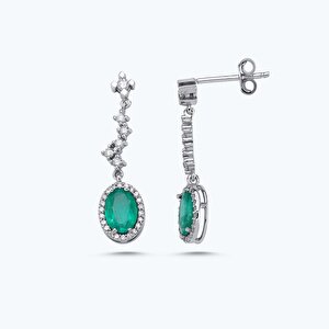 1.45 Karat Pırlanta Zümrüt Oval Küpe