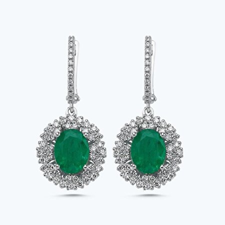 2.05 Karat Pırlanta Zümrüt Oval Küpe