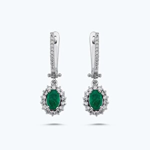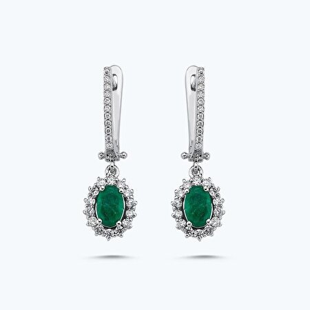 1.38 Karat Pırlanta Zümrüt Oval Küpe