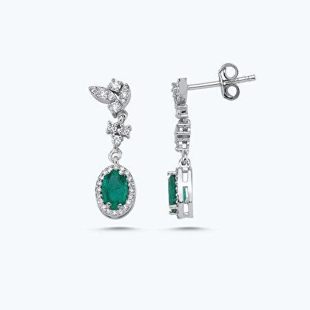 1.06 Karat Pırlanta Zümrüt Oval Küpe