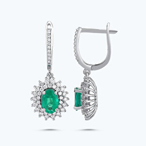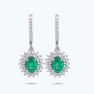 1.68 Karat Pırlanta Zümrüt Oval Küpe