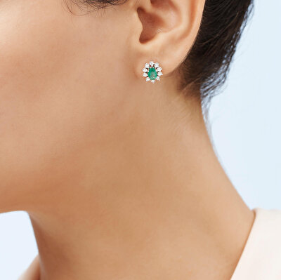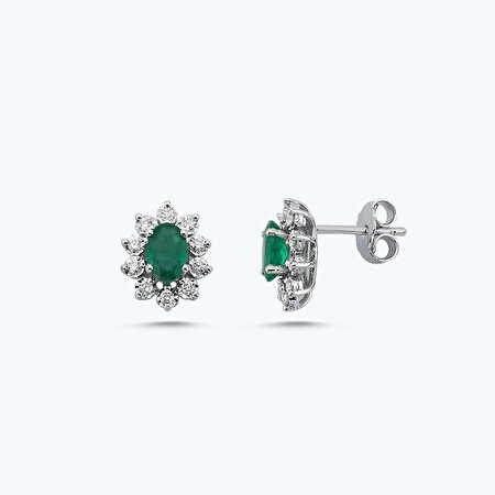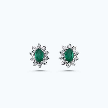 1.03 Karat Pırlanta Zümrüt Oval Küpe