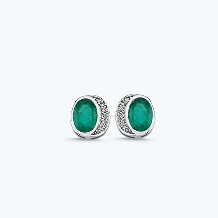 1.39 Karat Pırlanta Zümrüt Oval Küpe