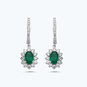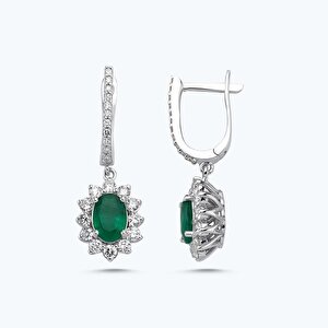 2.14 Karat Pırlanta Zümrüt Oval Küpe