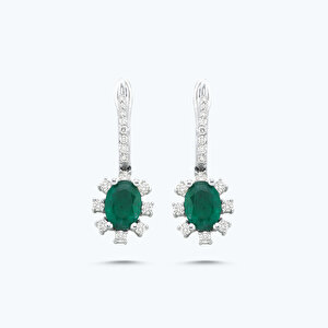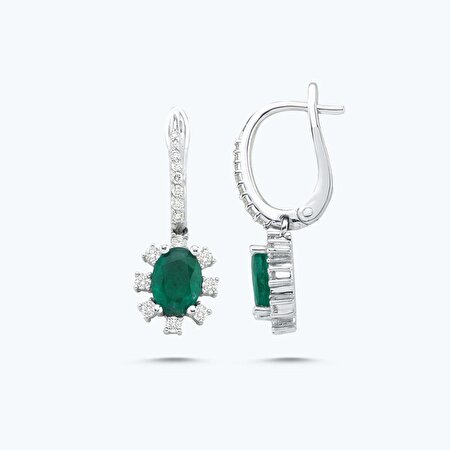 1.58 Karat Pırlanta Zümrüt Oval Küpe