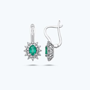 0.60 Karat Pırlanta Zümrüt Oval Küpe