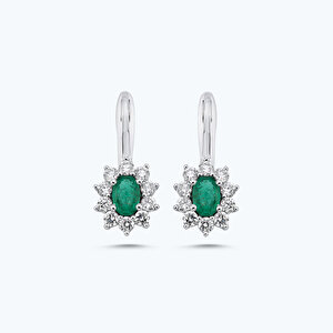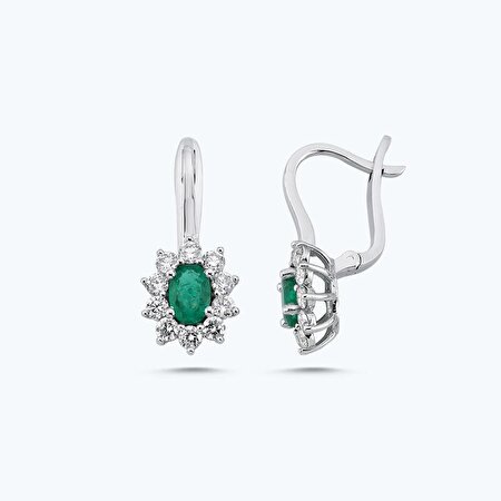 1.68 Karat Pırlanta Zümrüt Oval Küpe