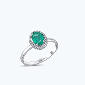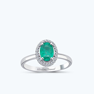 0.95 Karat Pırlanta Zümrüt Oval Yüzük