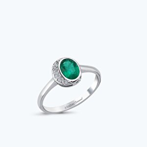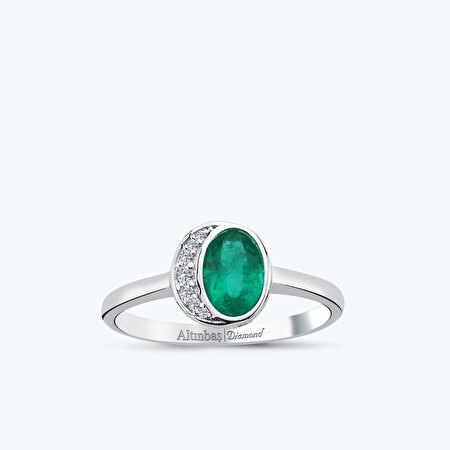 0.68 Karat Pırlanta Zümrüt Oval Yüzük