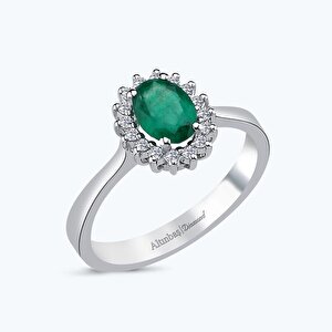 0.13 Karat Pırlanta Zümrüt Oval Yüzük