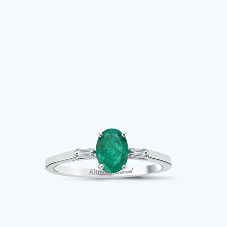0.68 Karat Pırlanta Zümrüt Oval Yüzük