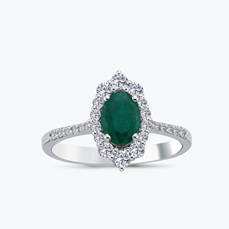 1.31 Karat Pırlanta Zümrüt Oval Yüzük