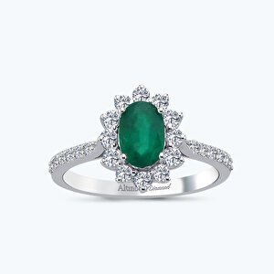 1.37 Karat Pırlanta Zümrüt Oval Yüzük