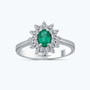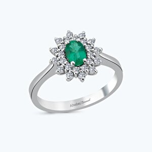 0.41 Karat Pırlanta Zümrüt Oval Yüzük