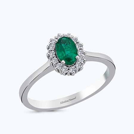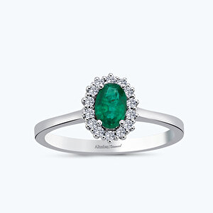 0.56 Karat Pırlanta Zümrüt Oval Yüzük