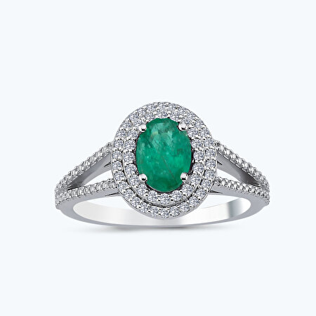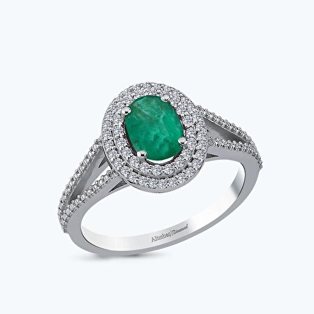 0.84 Karat Pırlanta Zümrüt Oval Yüzük