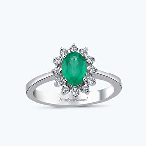 0.56 Karat Pırlanta Zümrüt Oval Yüzük