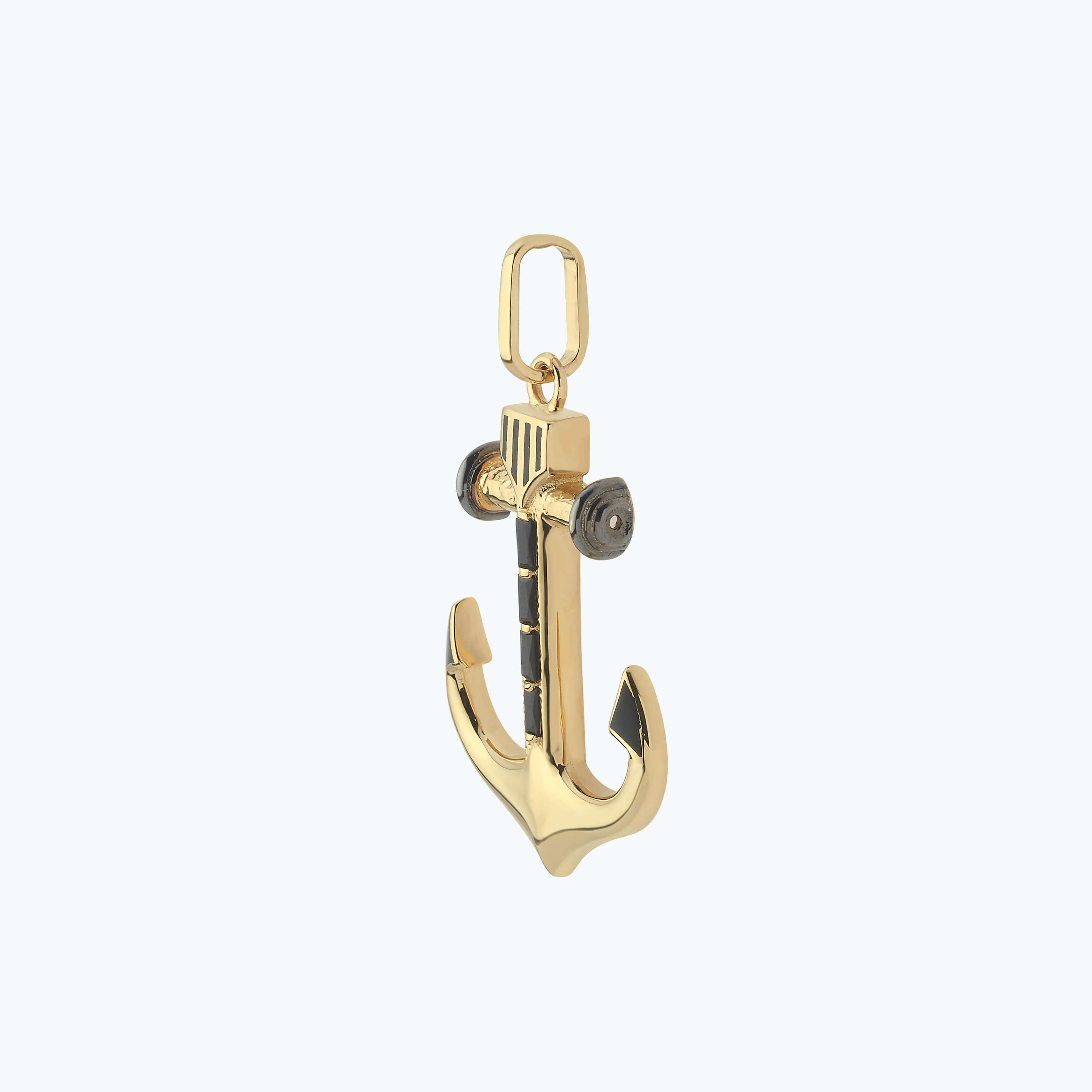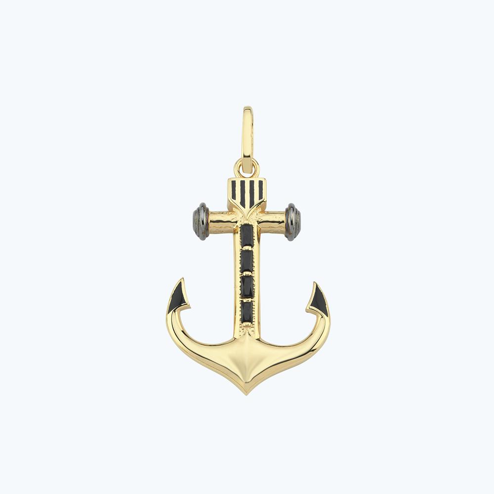 Siyah Taşlı Altın Çapa Kolye Ucu
